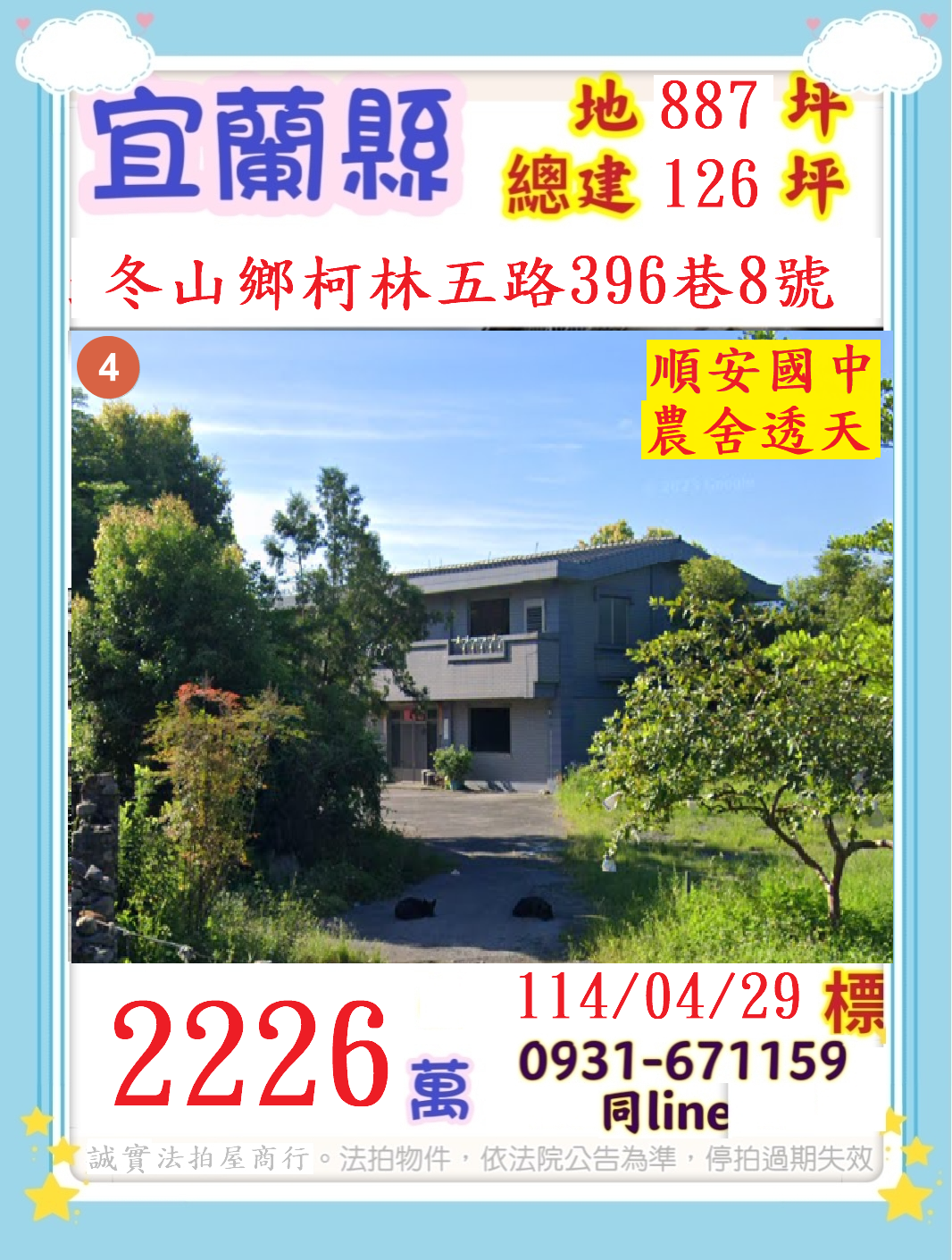 張經理推薦/宜蘭縣冬山鄉柯林五路順安國中三樓透天