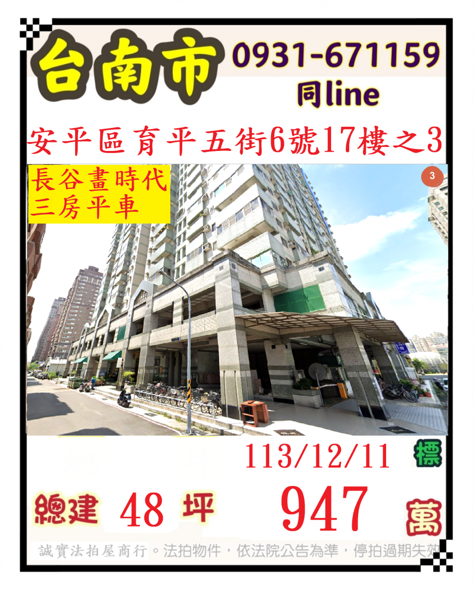 張經理推薦/台南安平區育平五街(長谷劃時代三房平車)