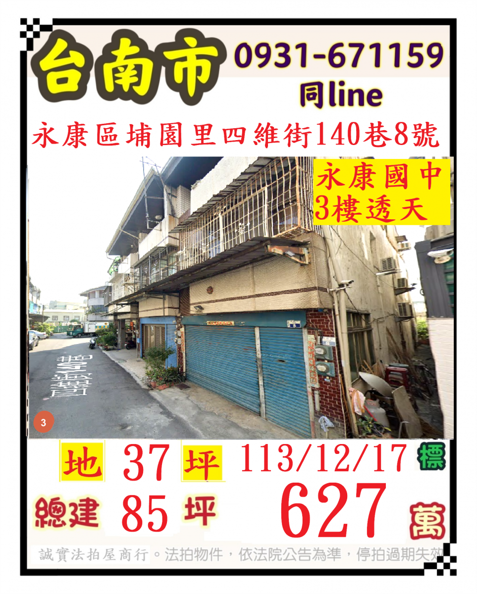 張經理推薦/台南永康區四維街(永康國中三樓透天)
