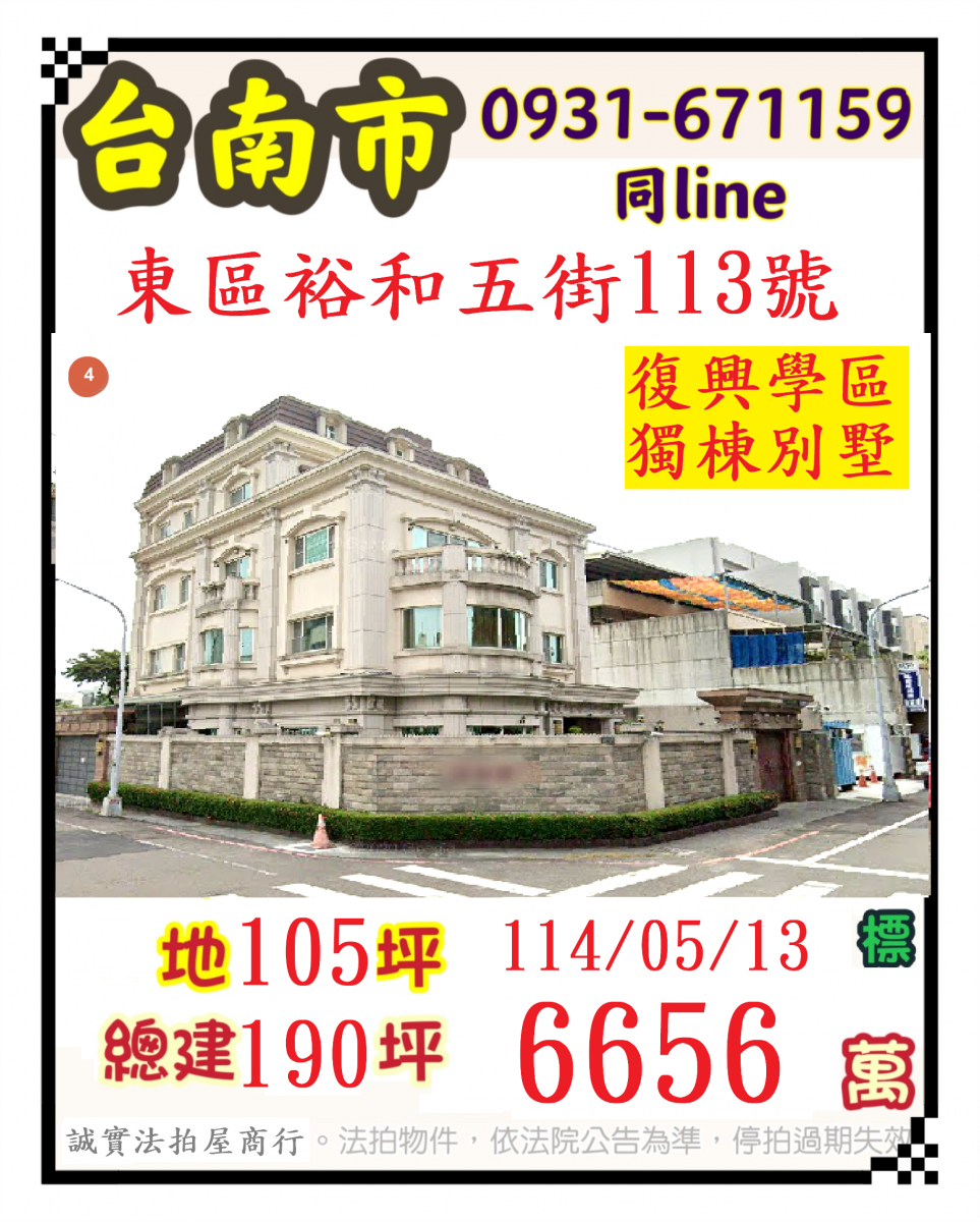 張經理推薦/台南市(東區裕和五街復興學區超大105坪地坪豪墅)