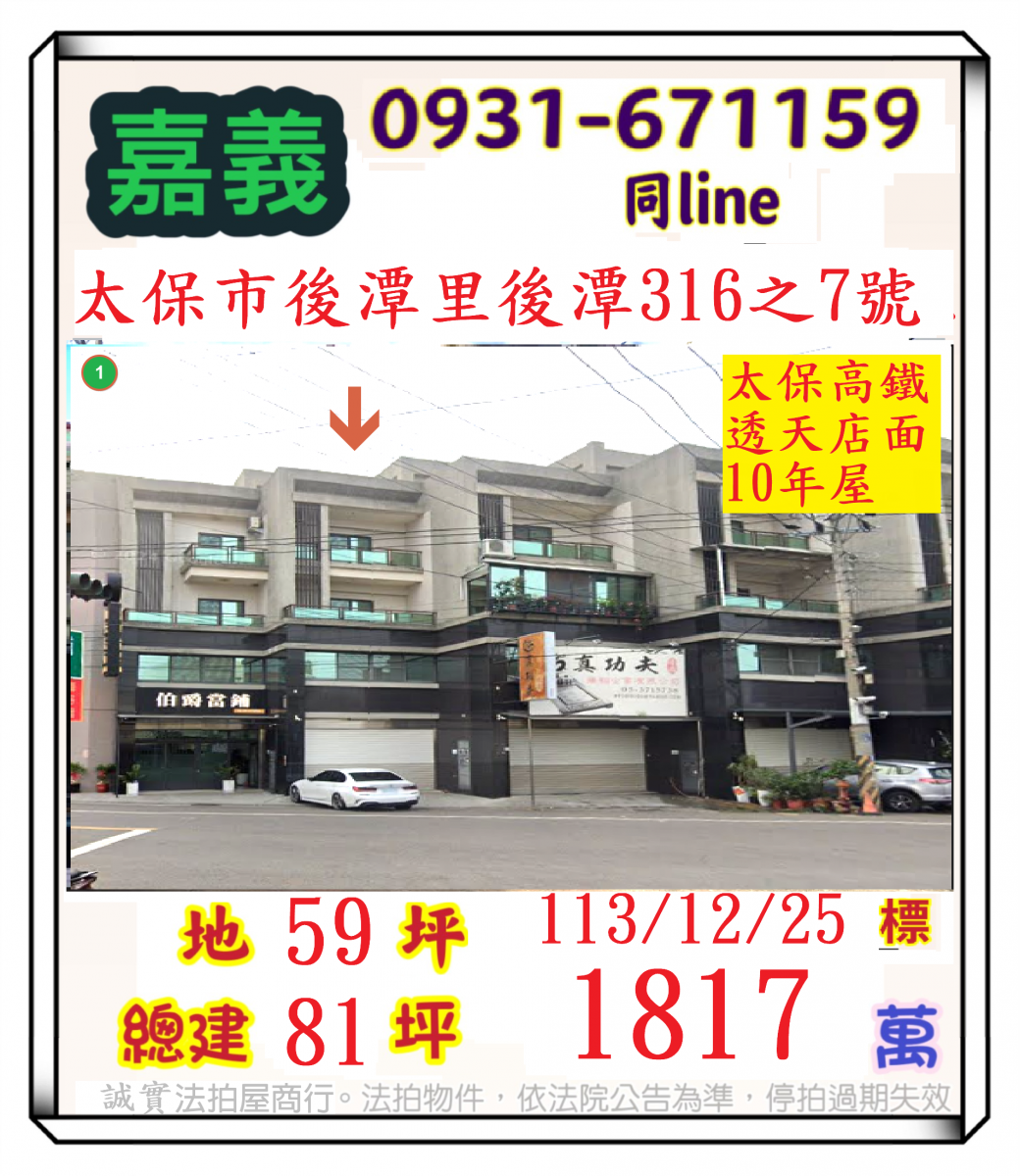 張經理推薦/嘉義太保市後潭(太保高鐵大地坪透天店面10年屋)