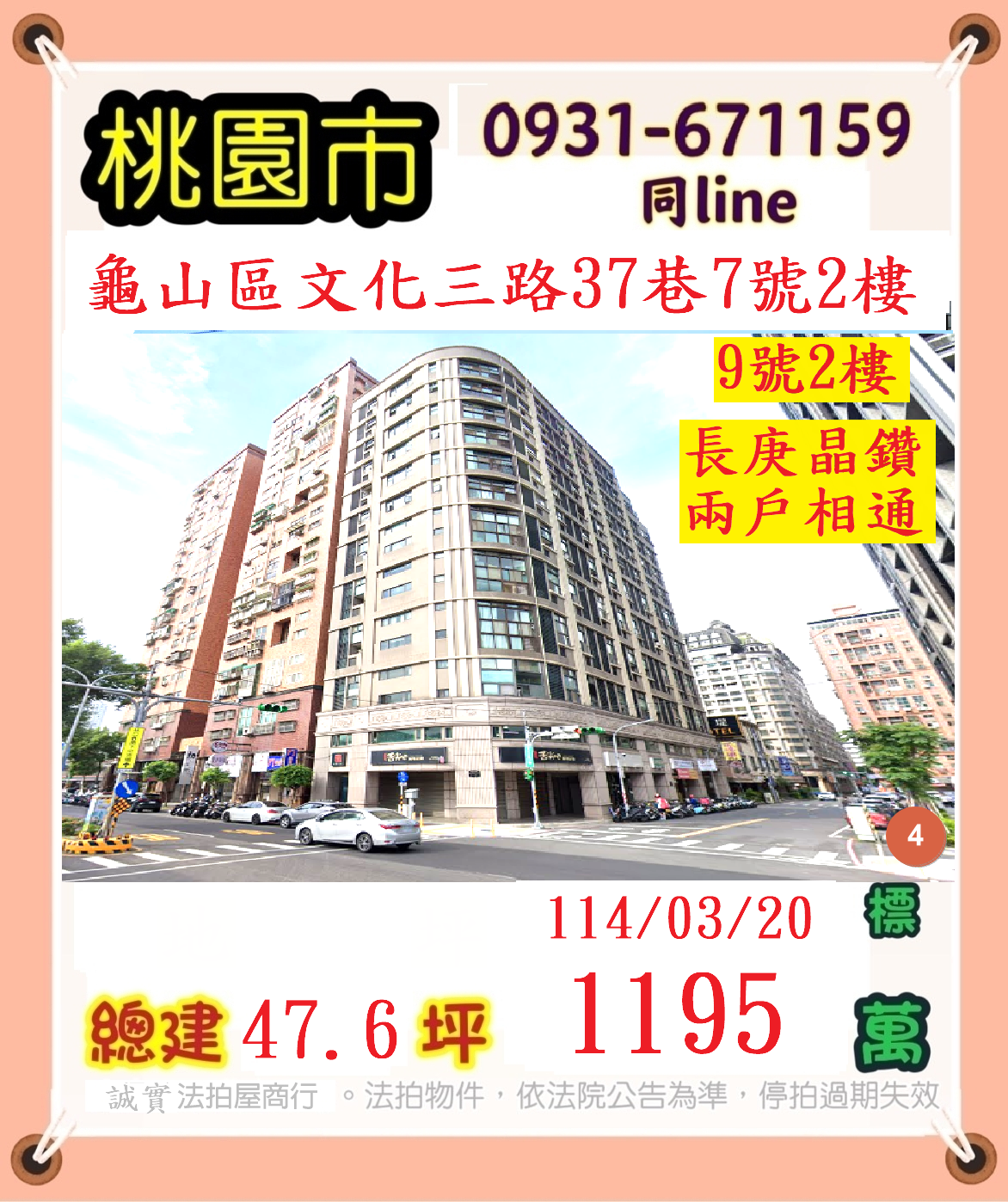 張經理推薦/桃園市龜山區文化三路長庚晶鑽二戶相通