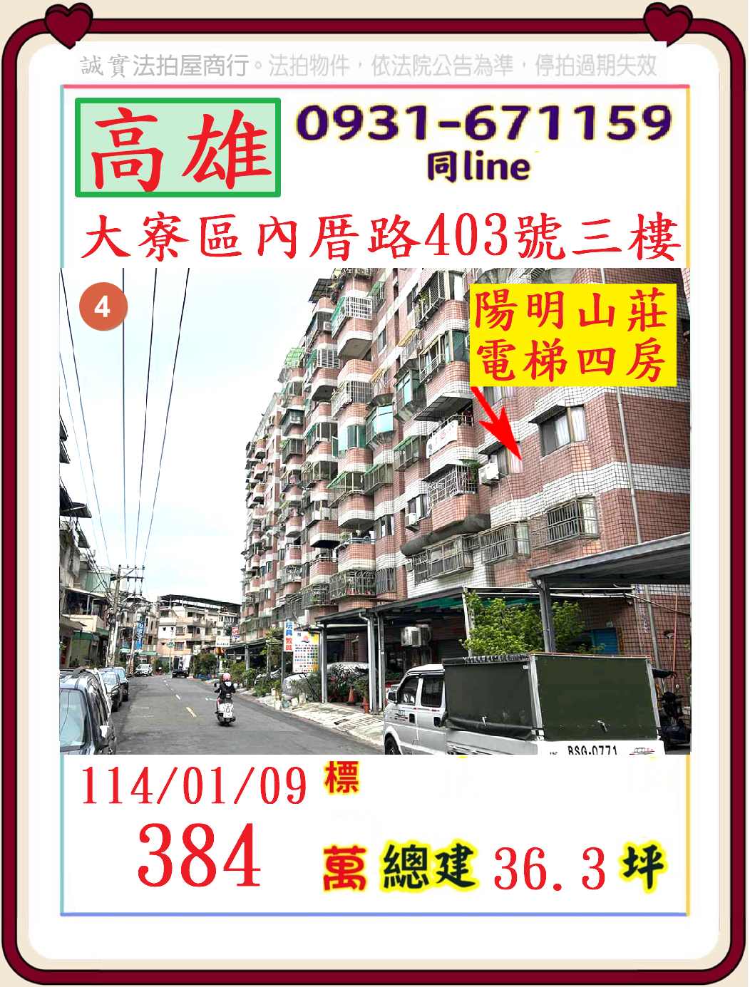 張經理推薦/高雄市大寮區內厝路(陽明山莊電梯美四房)