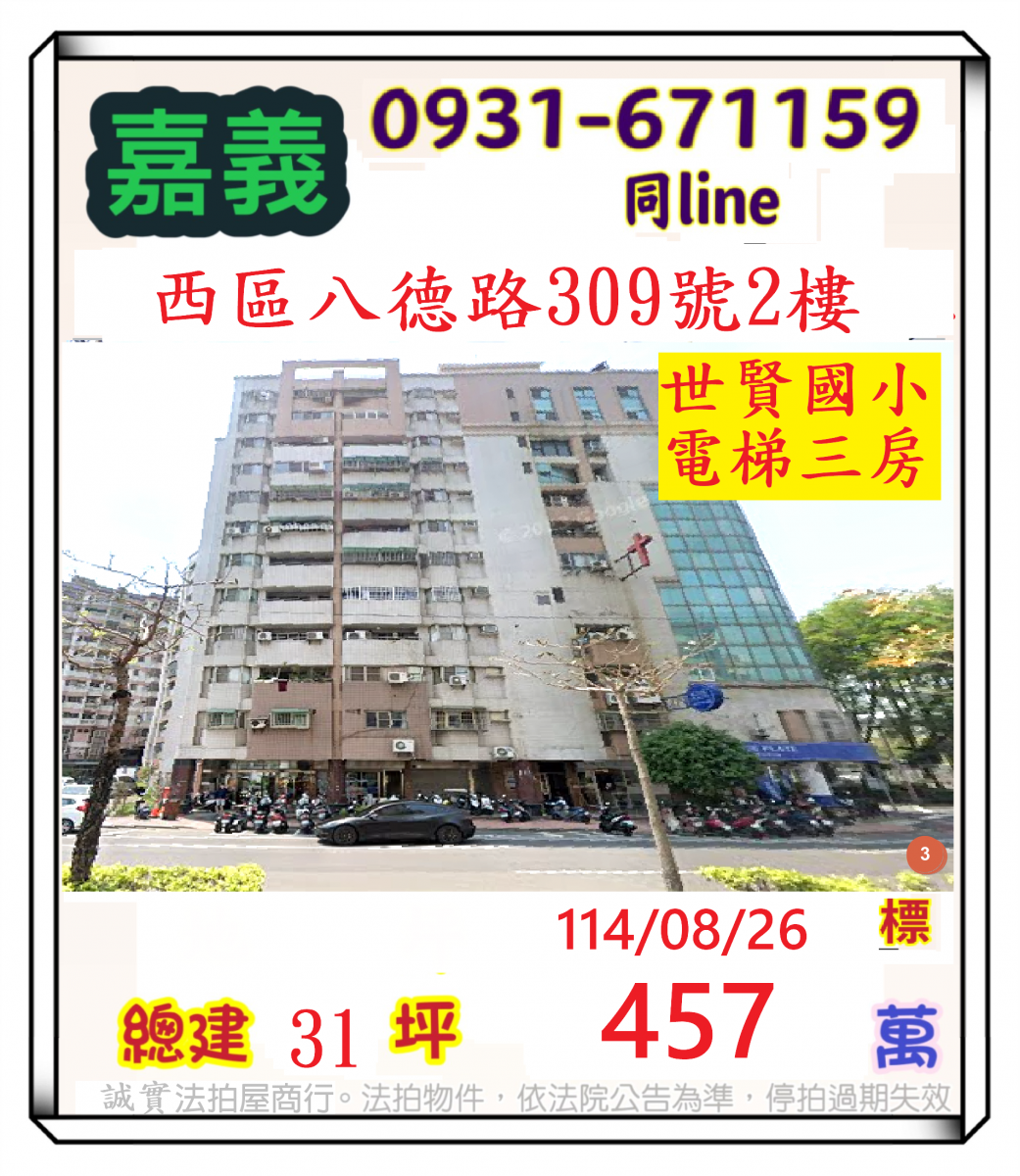 張經理推薦/嘉義西區八德路(世賢國小電梯三房)