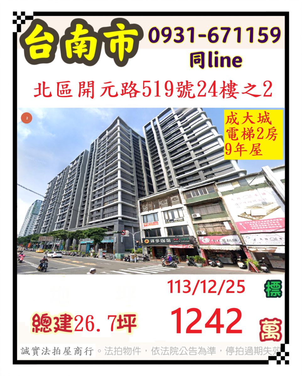 張經理推薦/台南北區開元路成大城電梯二房九年屋