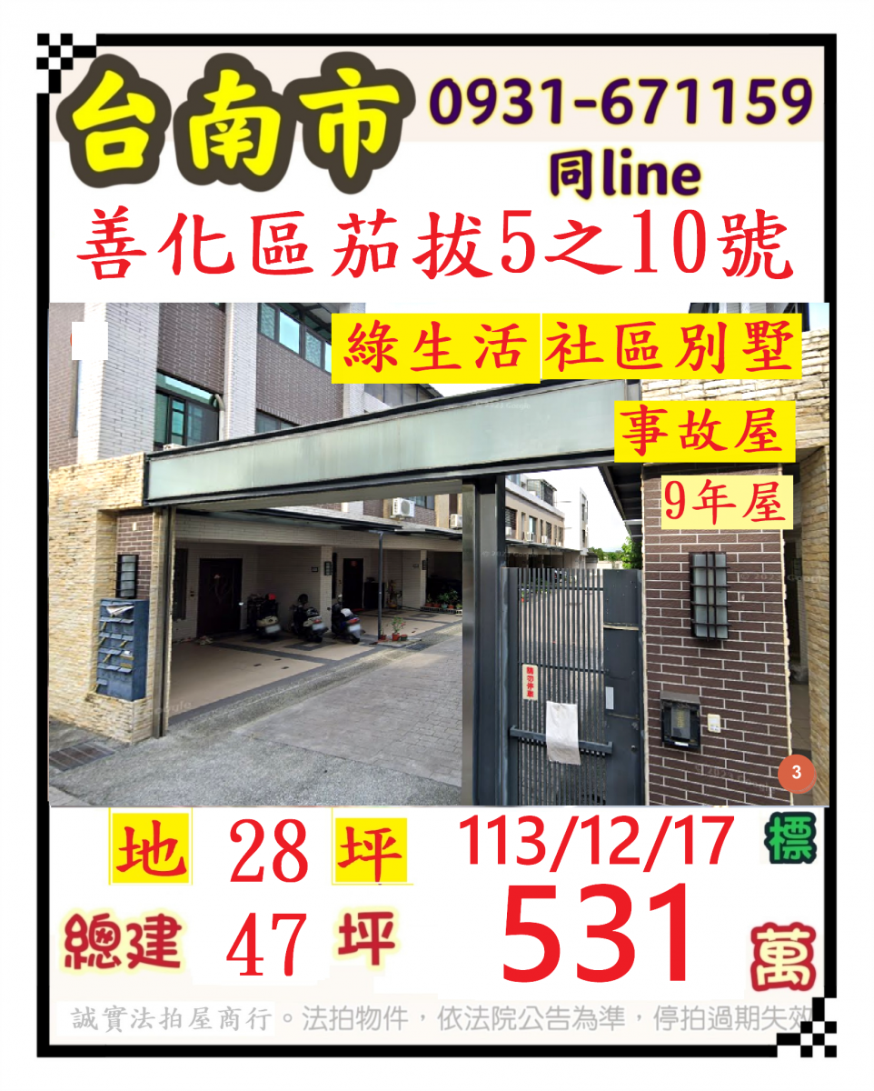 張經理推薦/台南市善化區(綠生活社區別墅九年屋區別墅九年屋)
