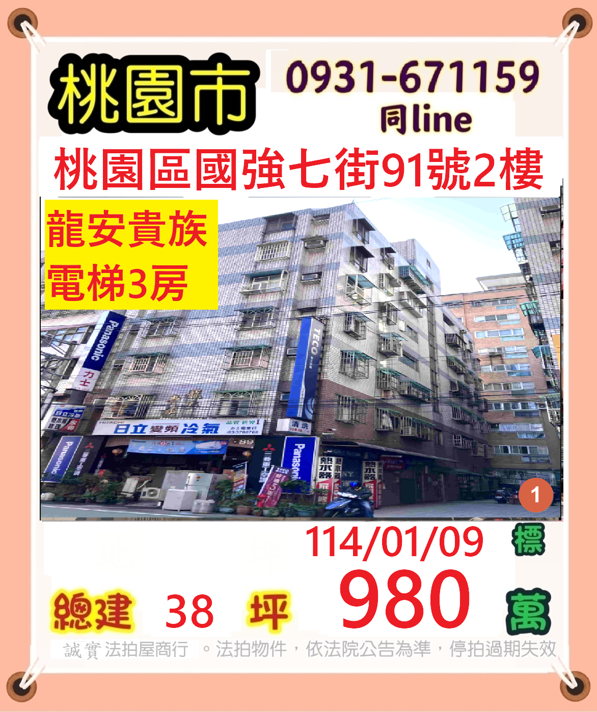 張經理推薦/桃園市國強七街(龍安貴族電梯三房)