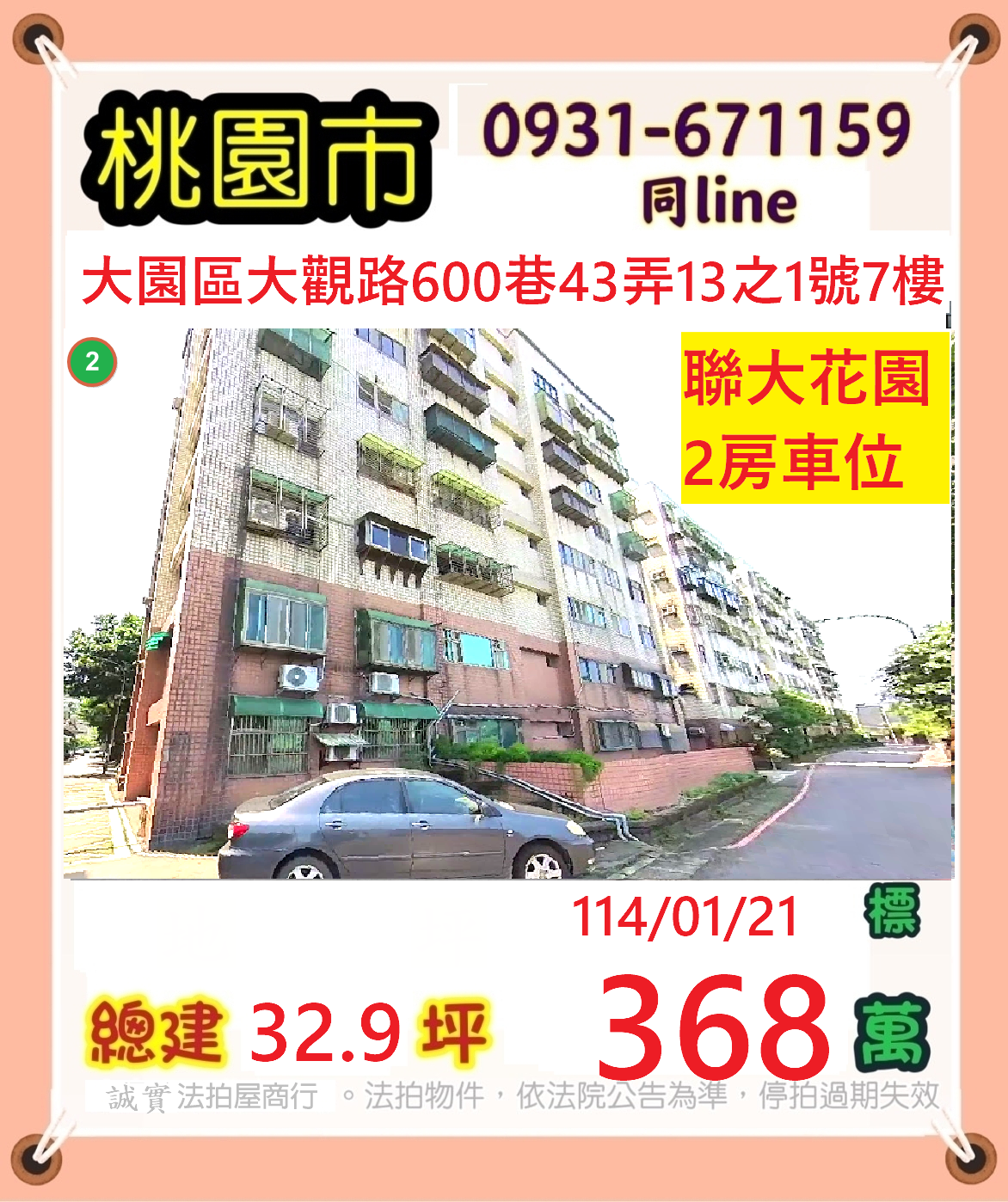 張經理推薦/桃園市大園區大觀路(聯大花園電梯二房)