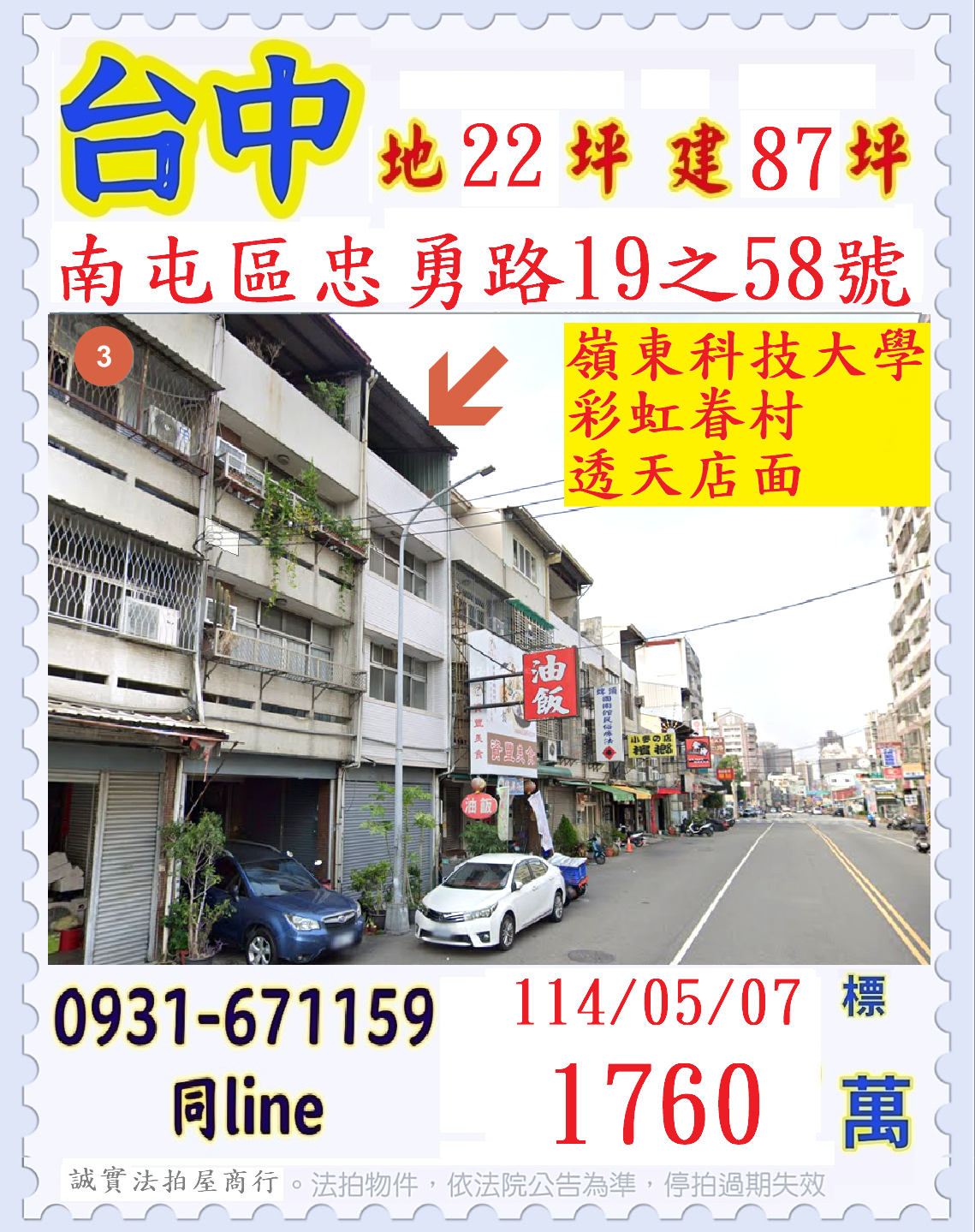 張經理推薦/台中南屯區忠勇路嶺東科技大學透天店面