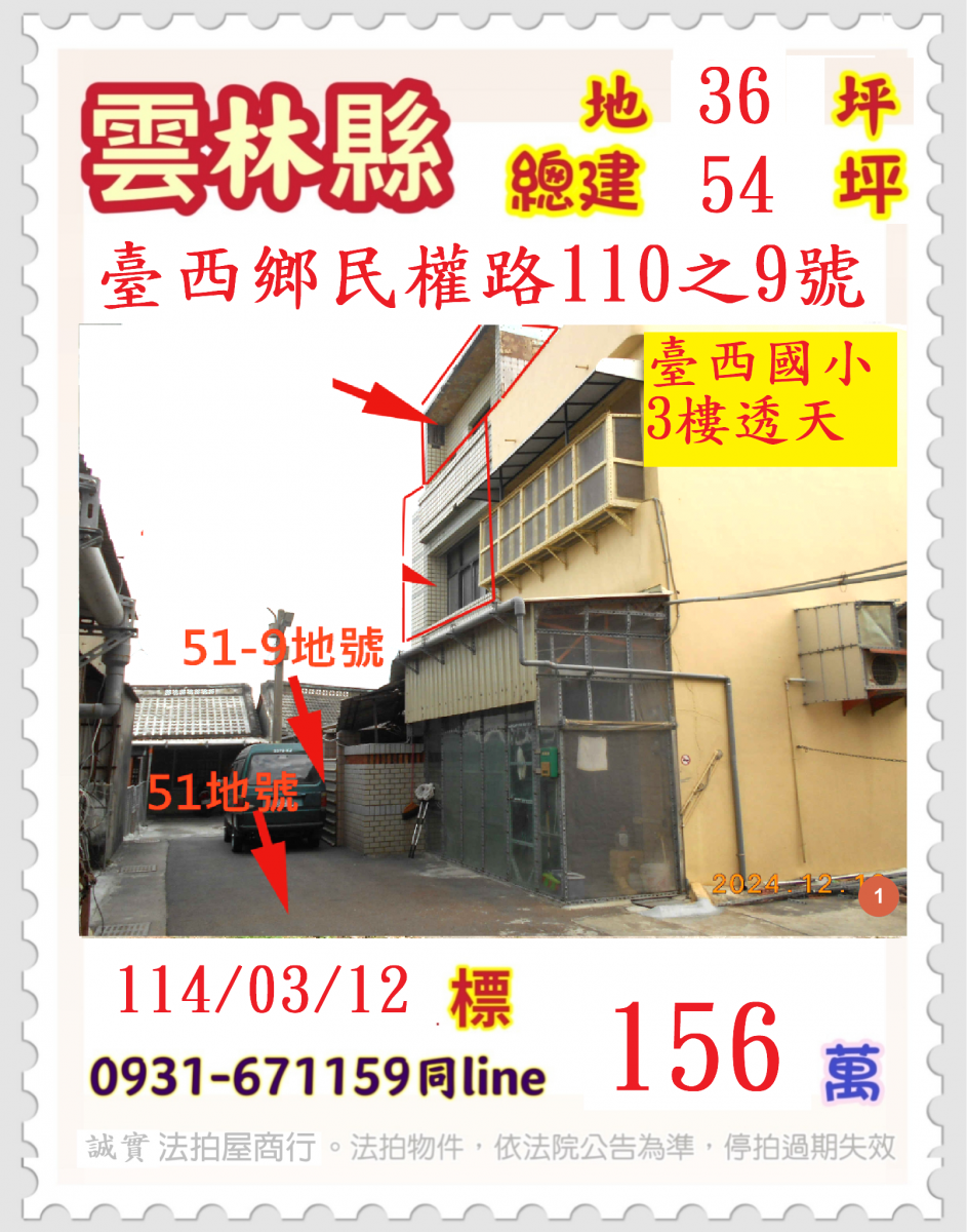 張經理推薦/雲林縣台西鄉民權路(台西國三樓小透天)
