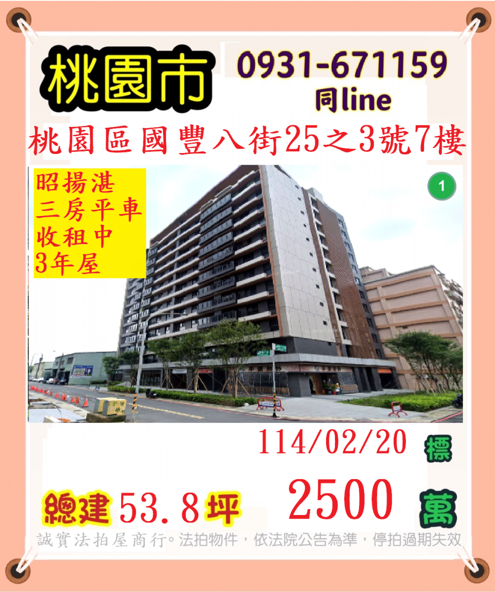 張經理推薦/桃園市國豐八街(昭楊湛三房平車三年屋)