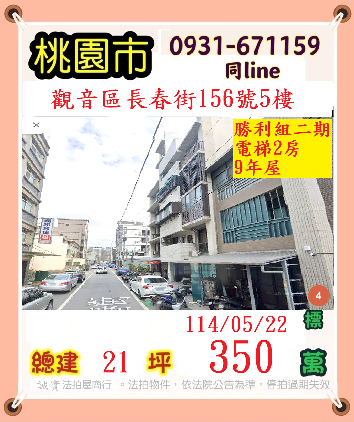 張經理推薦/桃園市觀音區長春街(勝利組二期電梯二房九年屋)