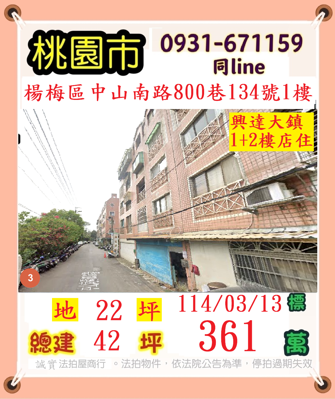 張經理推薦/桃園市楊梅區中山南路(興達大鎮1+2樓店住)