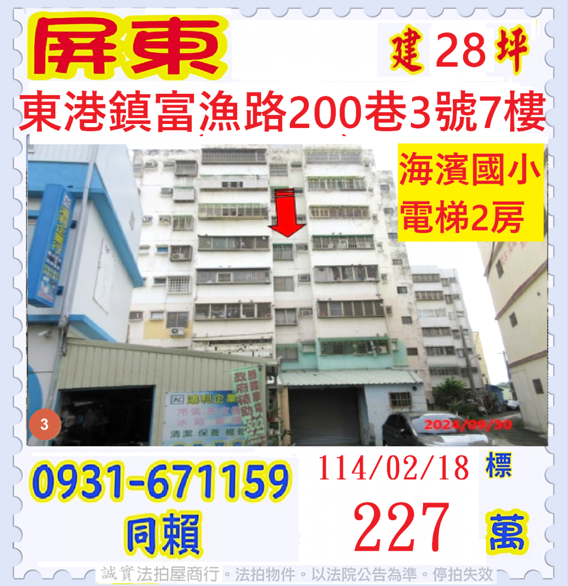 張經理推薦/屏東縣東港鎮富漁路(海濱國小電梯二房)
