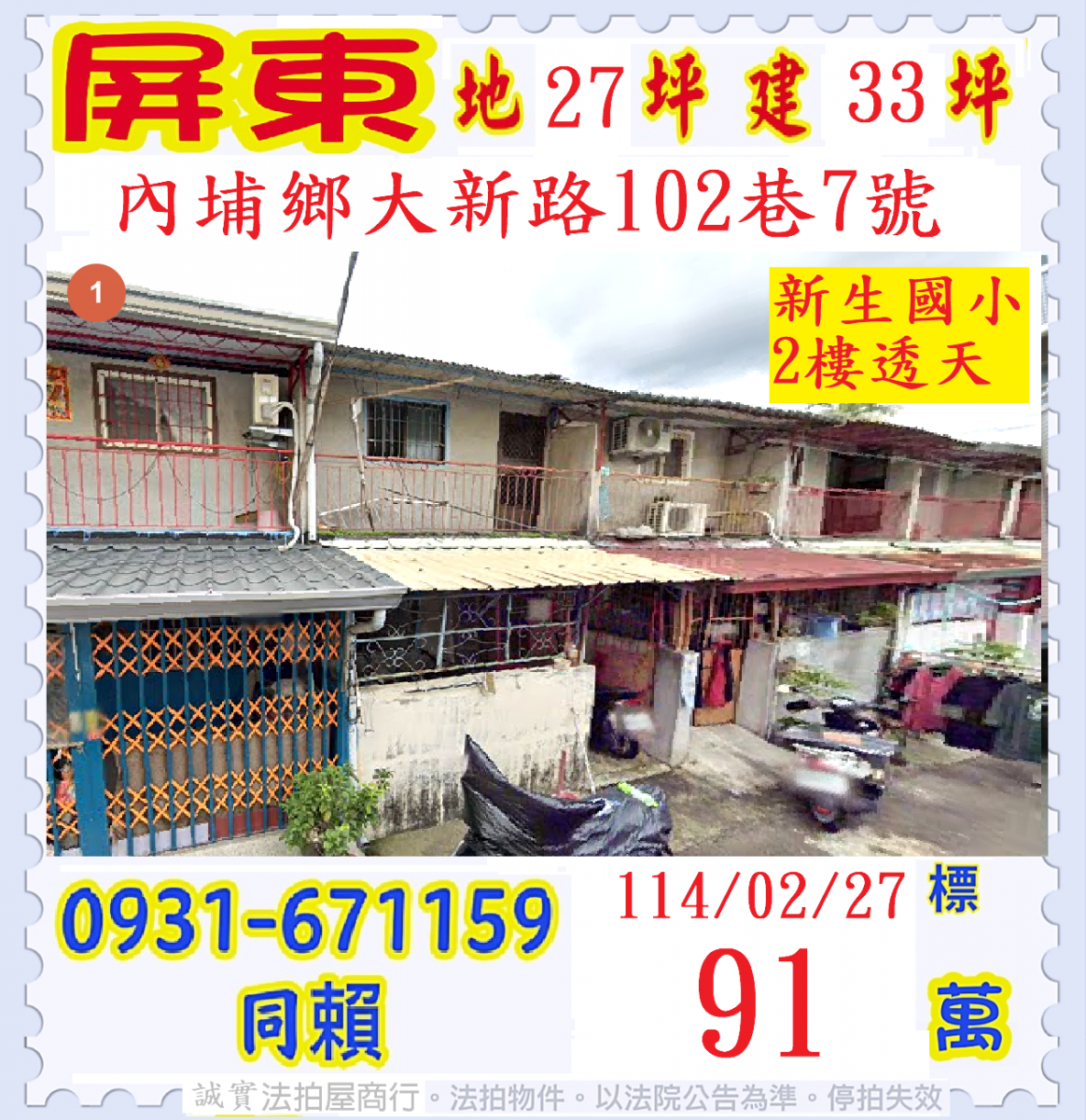 張經理推薦/屏東縣內埔鄉大新路(新生國小二樓透天)