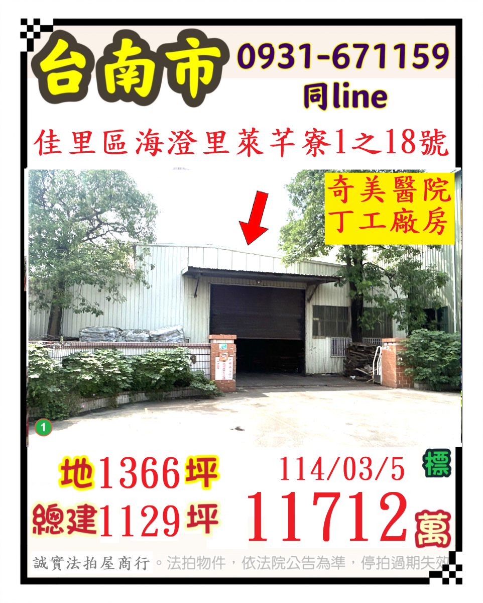 張經理推薦/台南市佳里區海澄里萊芊寮(奇美醫院丁種工業廠房)