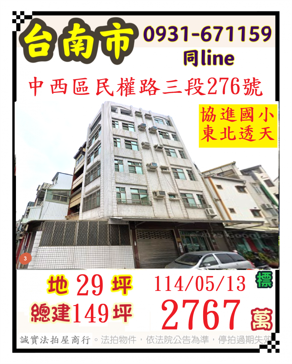 張經理推薦/台南市中西區民權路三段(協進國小朝東北透天)