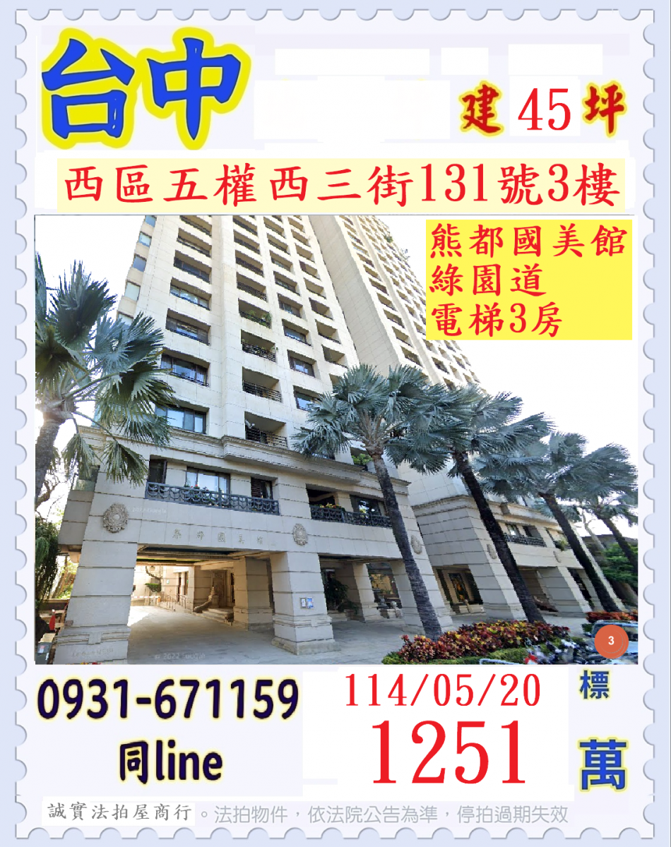 首頁 | 張經理推薦/台中市西區五權西三街(熊都國美館三房)