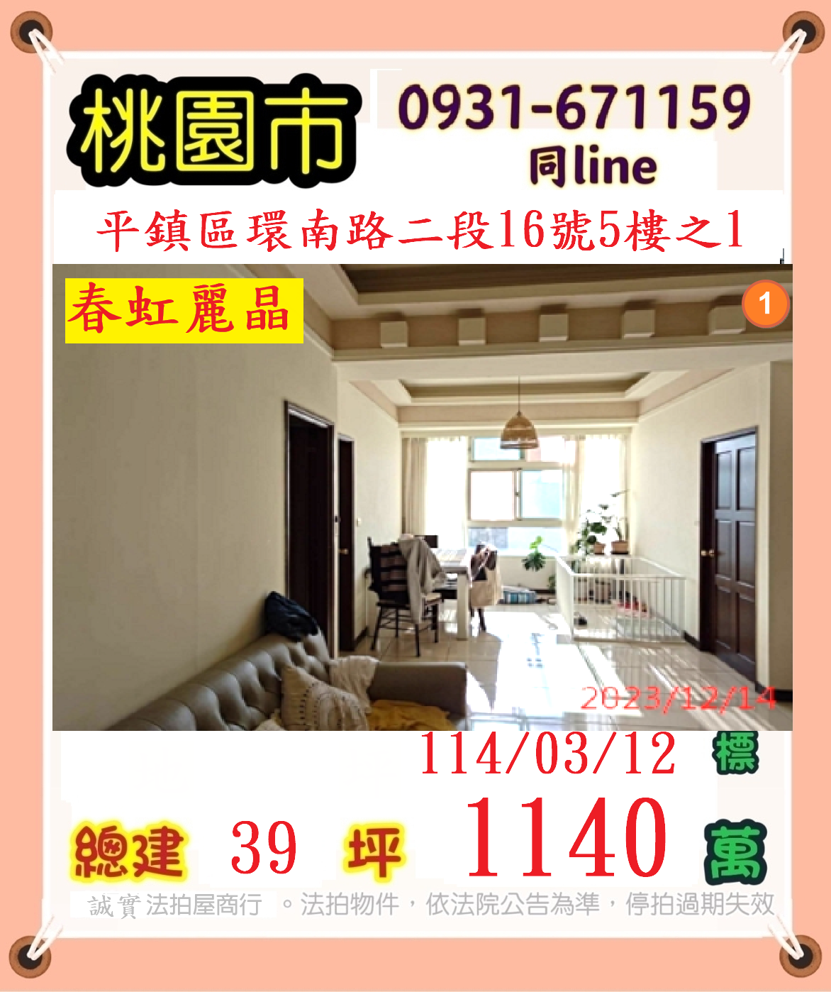 張經理推薦/桃園市平鎮區環南路二段(春虹麗菁電梯大樓)