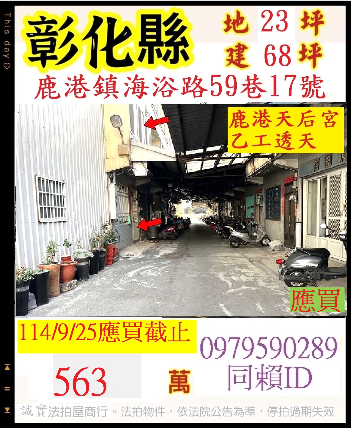 9/25應買彰化縣鹿港鎮海浴路59巷17號
