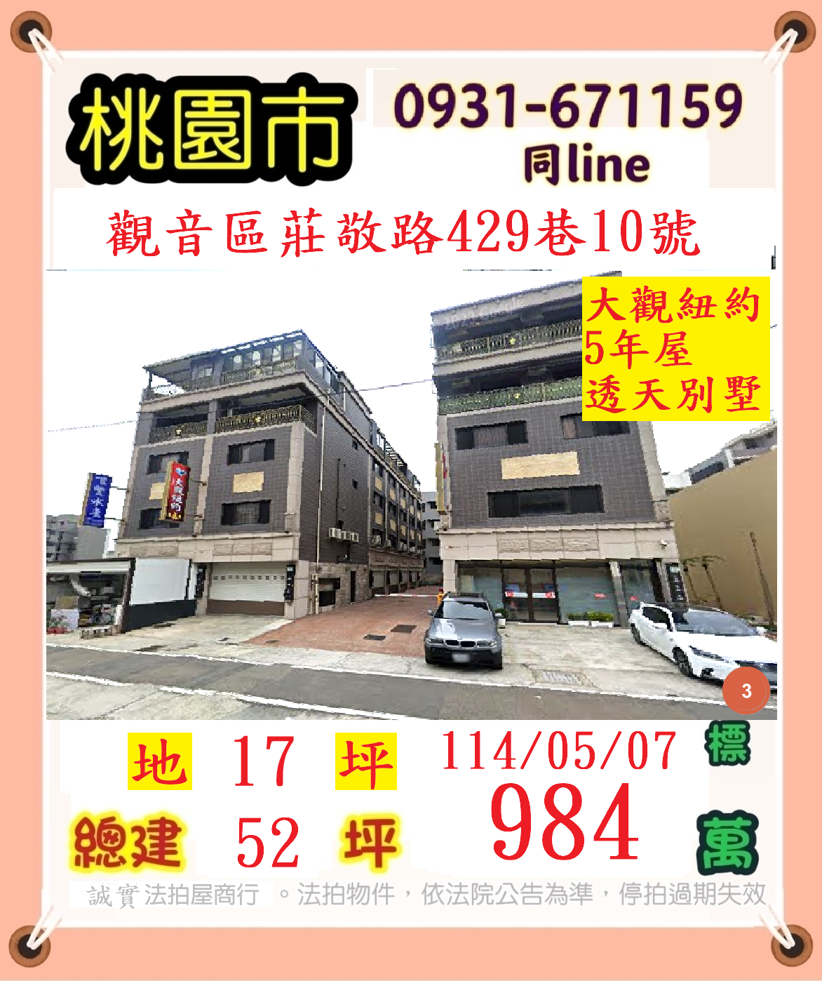 張經理推薦/桃園市觀音區莊敬路(大觀妞約五年透天別墅)