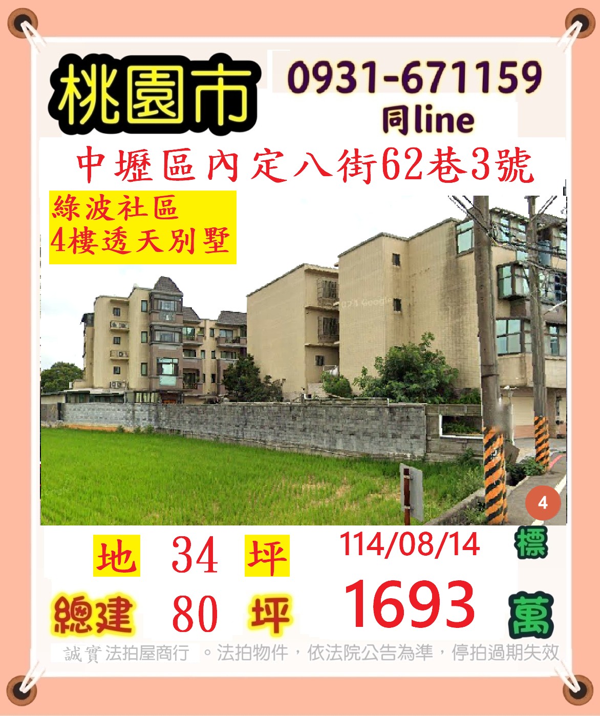 張經理推薦/桃園市中壢區內定八街(綠波14年屋透天別墅)