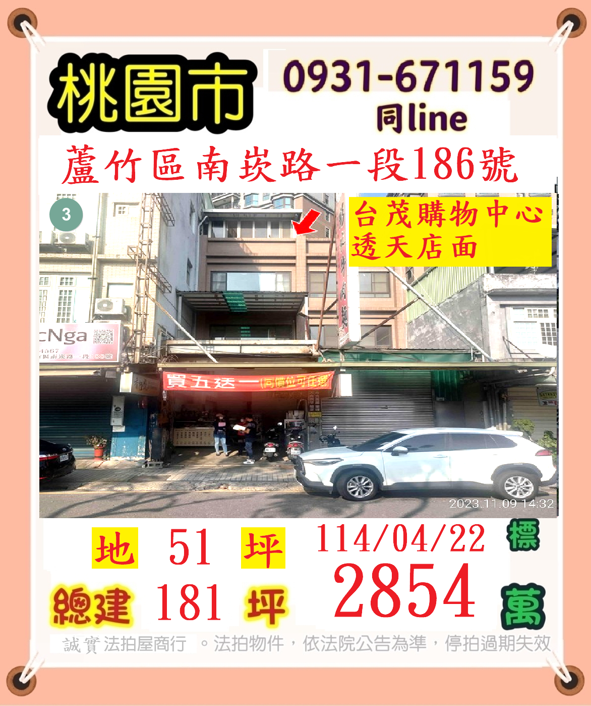張經理推薦/桃園市蘆竹區南崁路一段(台茂購物中心透天店面)