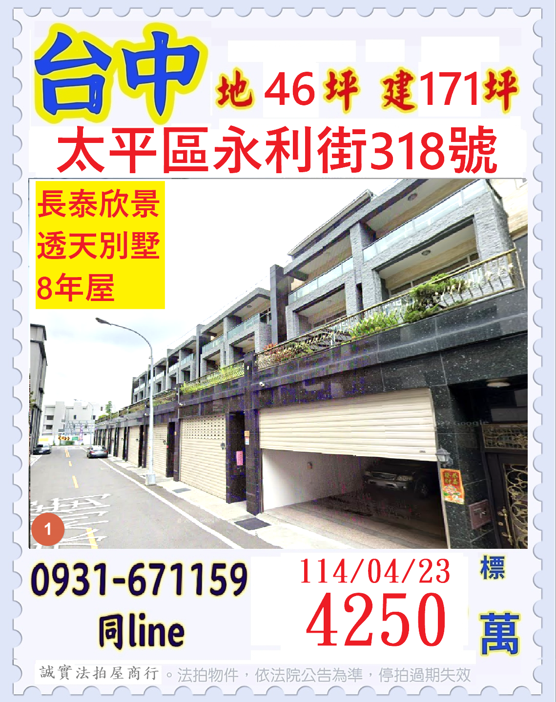張經理推薦/台中市太平區永利街(長泰欣景透天別墅八年屋)