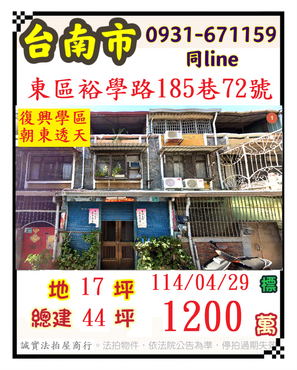 張經理推薦/台南市東區(裕學路靜巷朝東透天)