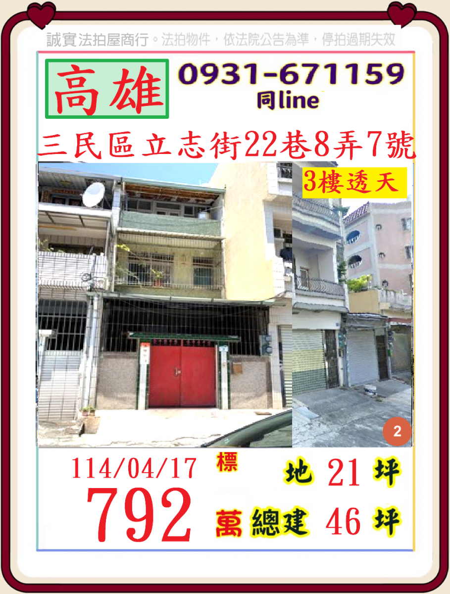張經理推薦/高雄市三民區立志街靜巷三樓透天