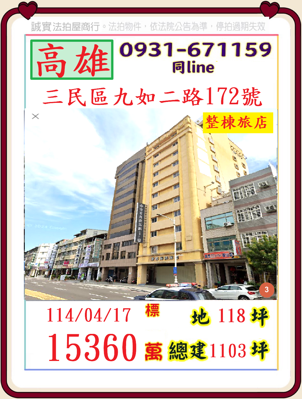 張經理推薦/高雄市三民區九如二路(拍賣整棟商旅)整棟商旅)