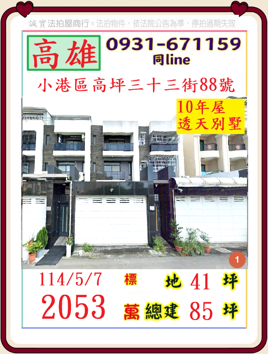 張經理推薦/高雄市小港區高坪三十三街(優美透天別墅十年屋)