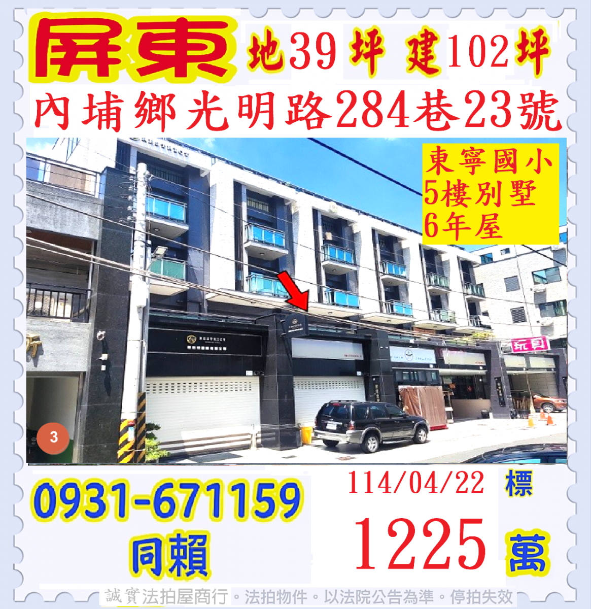 張經理推薦/屏東縣內埔鄉光明路(東寧國小透天美墅6年屋)