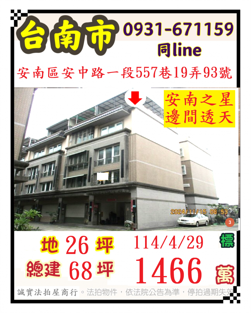 張經理推薦/台南市安南區安中路一段(安南之星邊間透天)