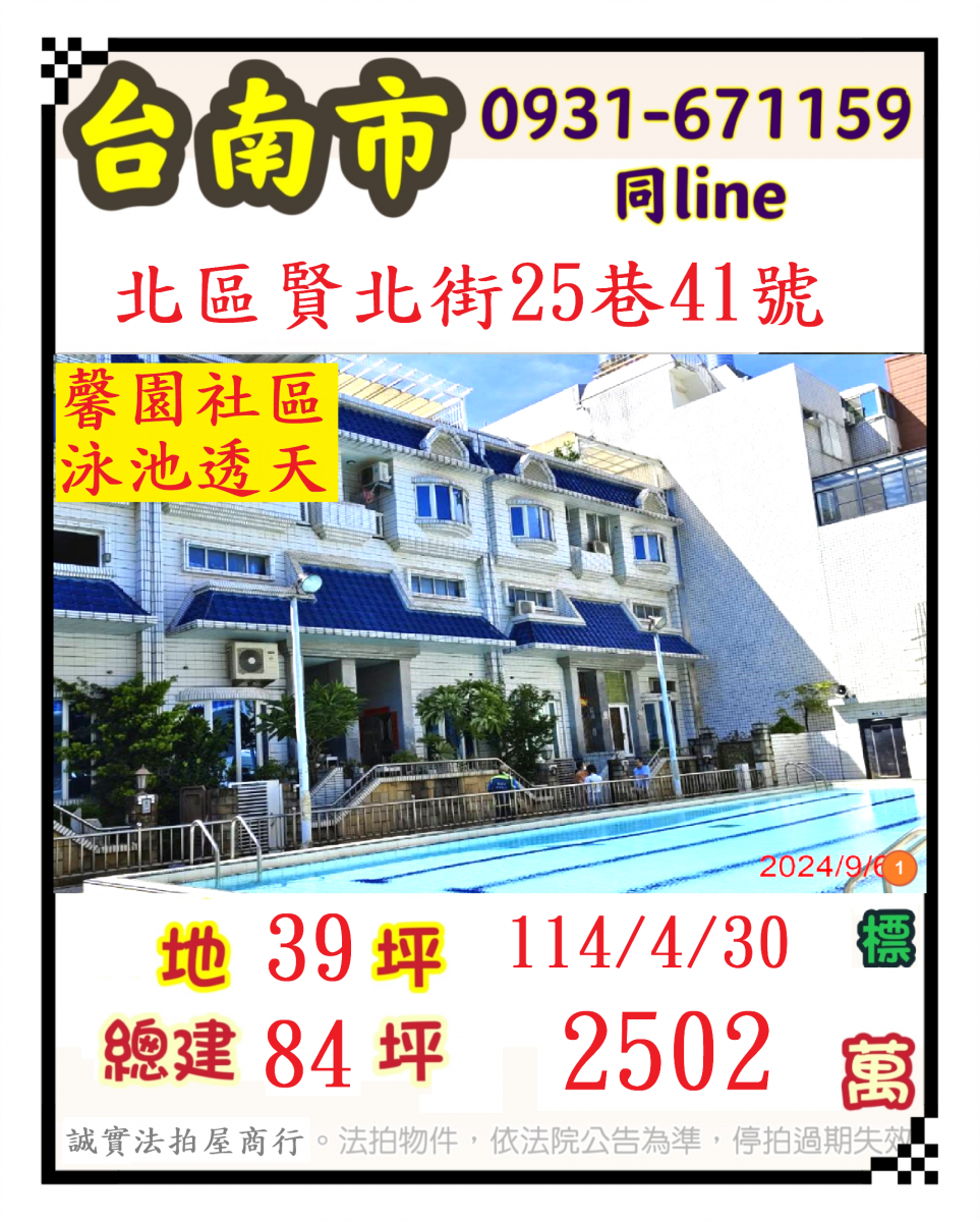 張經理推薦/台南市北區賢北街(馨園社區好市多泳池透天別墅)
