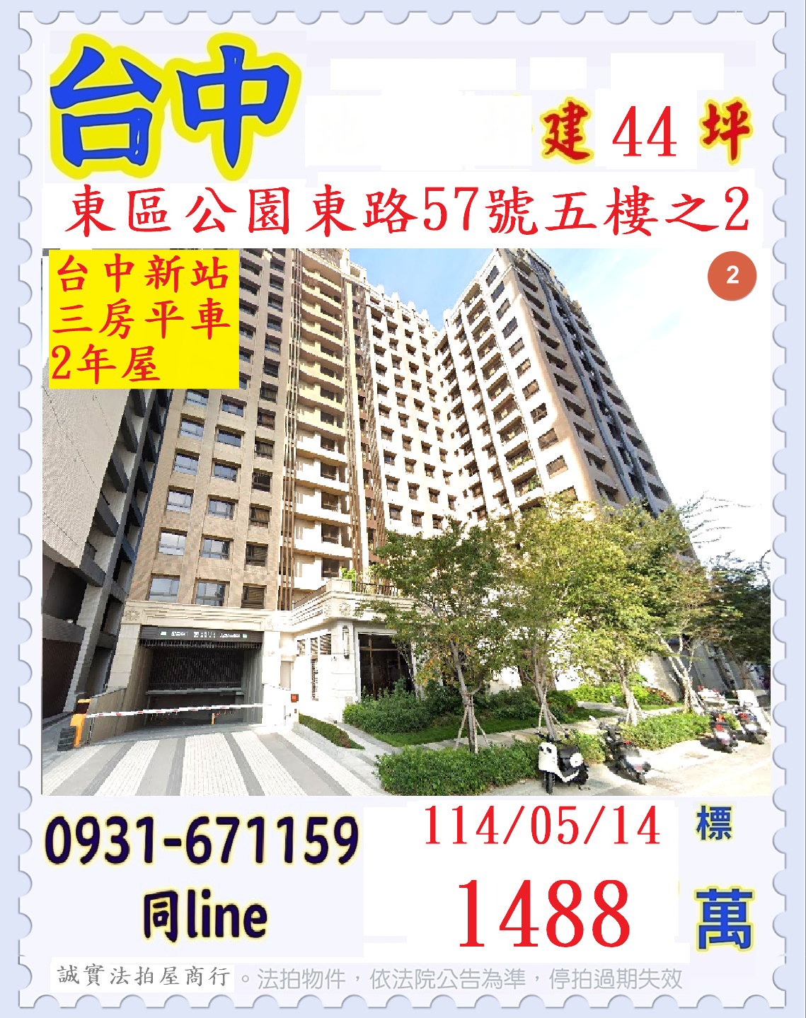 張經理推薦/台中市東區公園東路(台中新站三房平車二年屋)