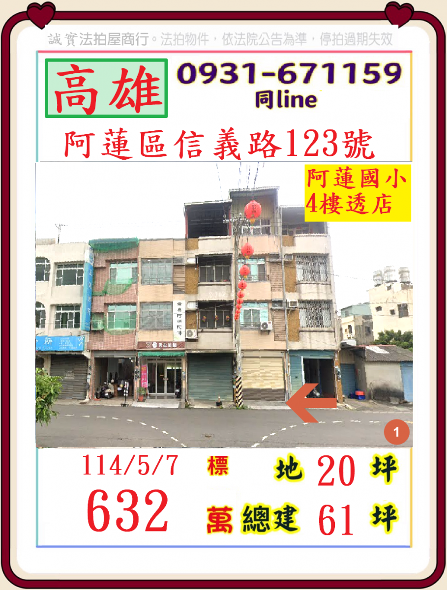 張經理推薦/高雄市阿蓮區信義路(阿蓮國小4樓透天金店面)