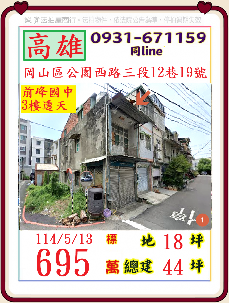 張經理推薦/高雄市岡山區公園西路(前峰國中靜巷透天)