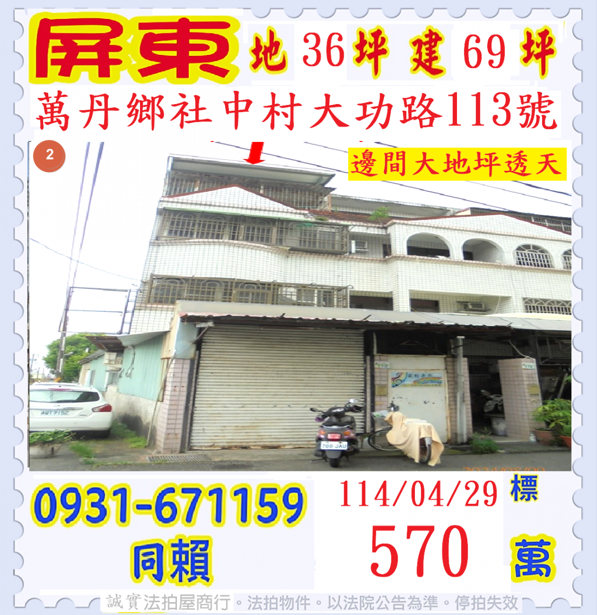 張經理推薦/屏東縣萬丹鄉(社中村大功路邊間大地坪透天)