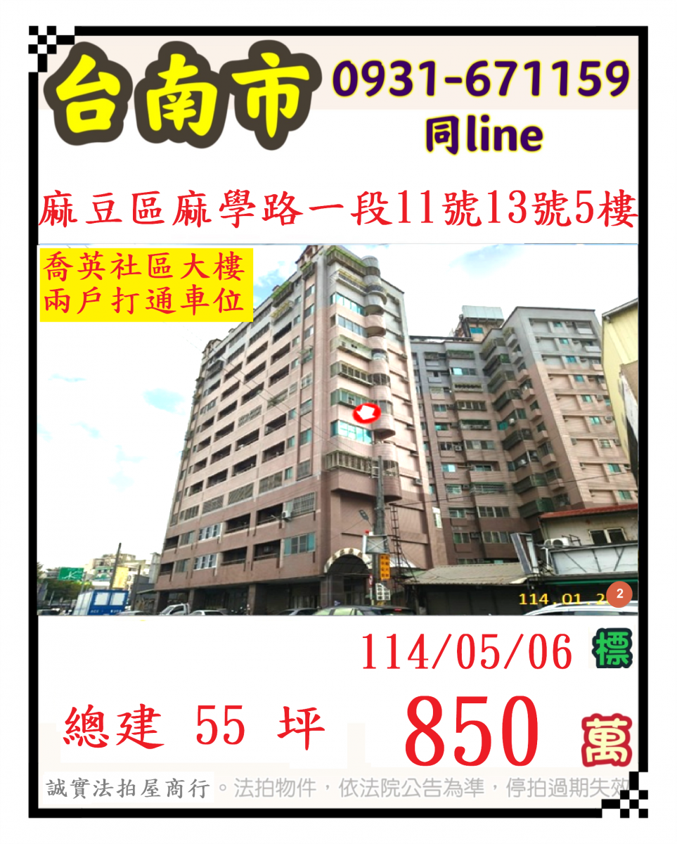 張經理推薦/台南市麻豆區麻學路一段(橋英社區四房加車位)