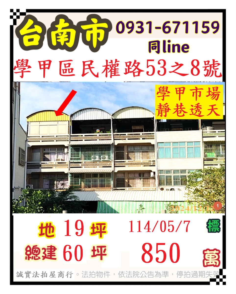 張經理推薦/台南市學甲區民權路(學甲市場靜巷透天)