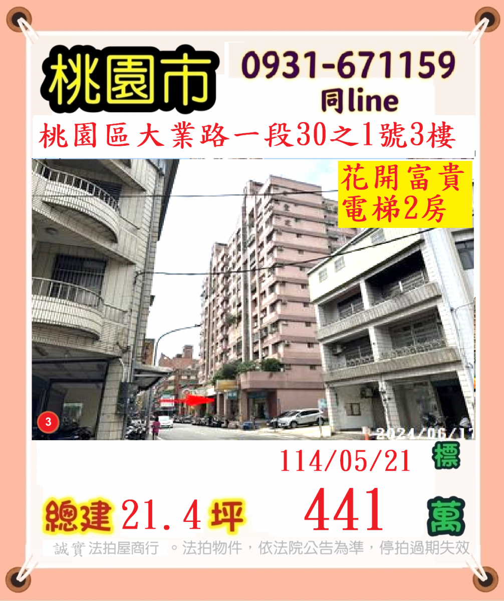 張經理推薦/桃園區大業路一段(花開富貴電梯二房)