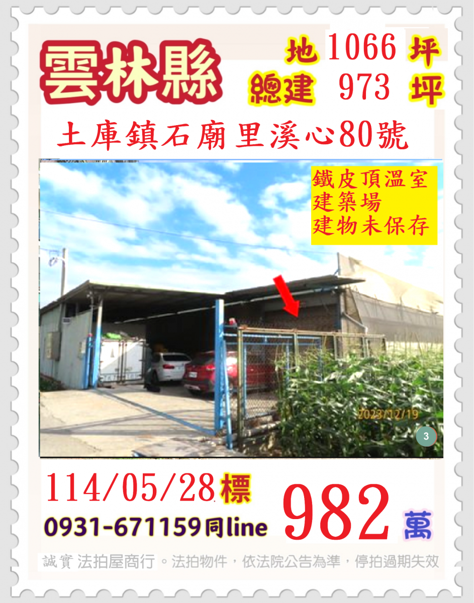 首頁 | 張經理推薦/雲林縣土庫鎮石廟里溪心(鐵皮溫室建築場)