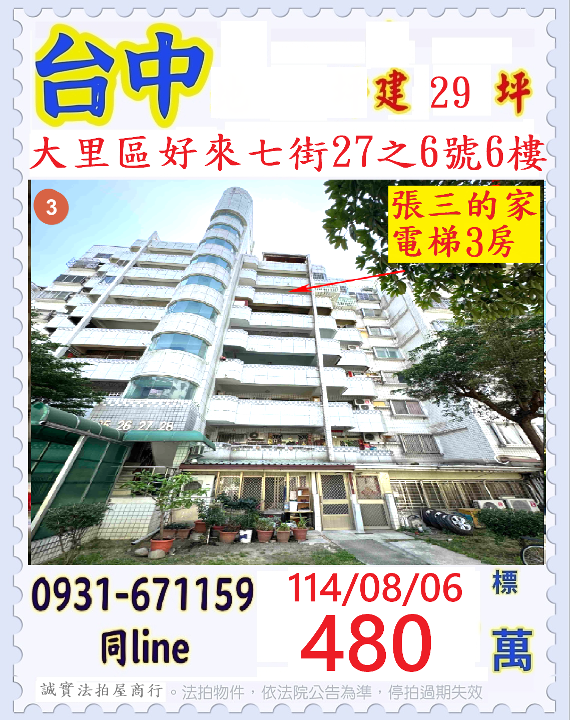 首頁 | 張經理推薦/台中市大里區好來七街(張三的家電梯二房)