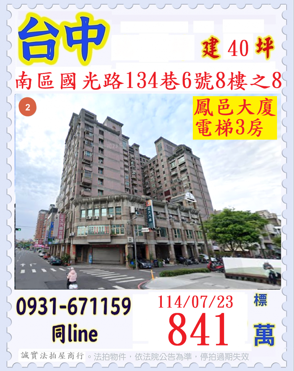 張經理推薦/台中市南區國光路(鳳邑大廈電梯三房房)