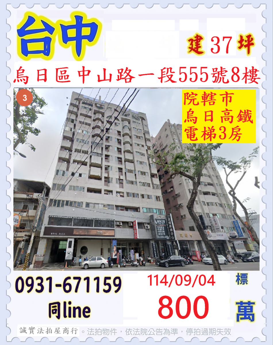 台中市烏日區中山路一段555號八樓
