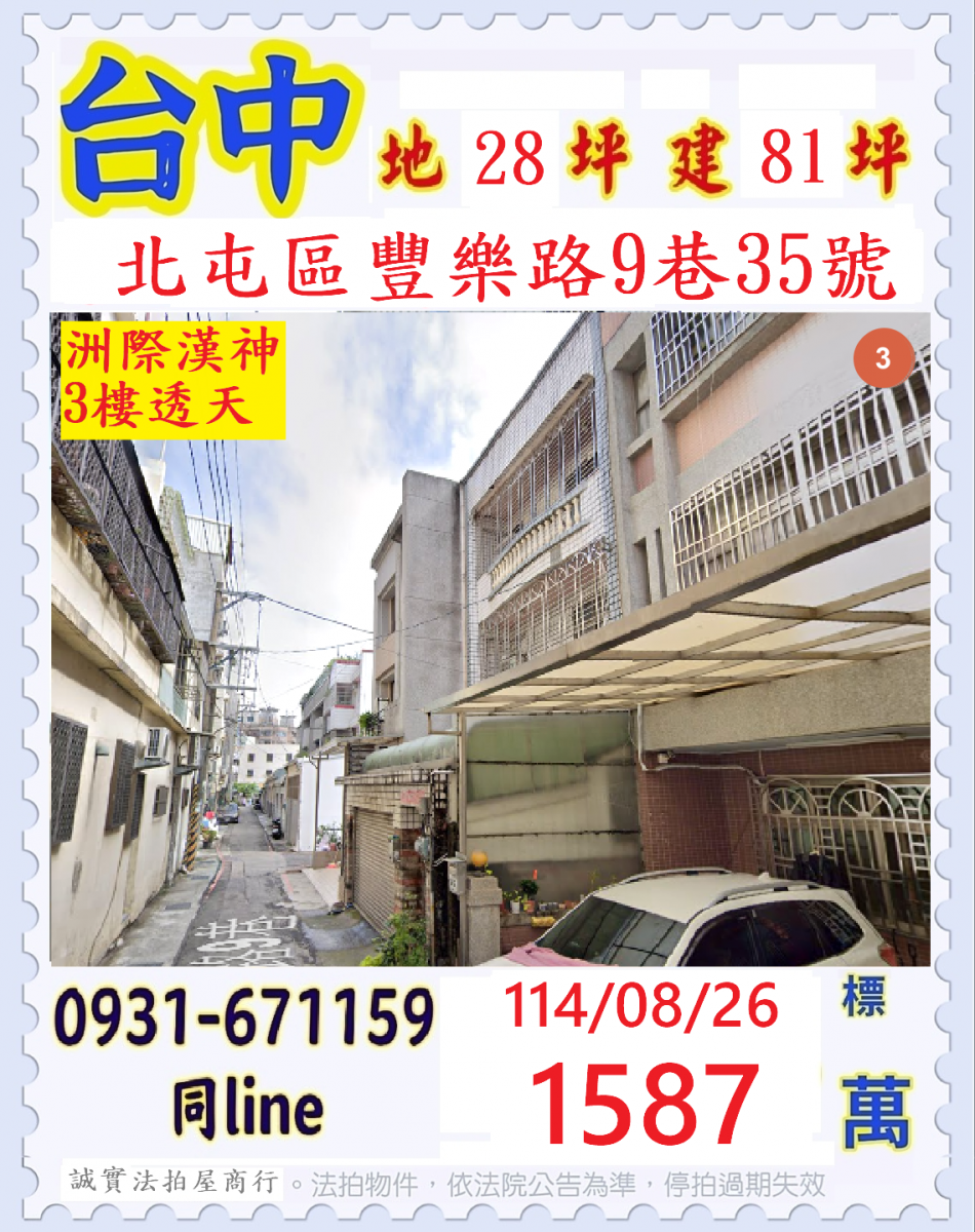 張經理推薦/台中市北屯豐樂路(洲際漢神三樓透天)