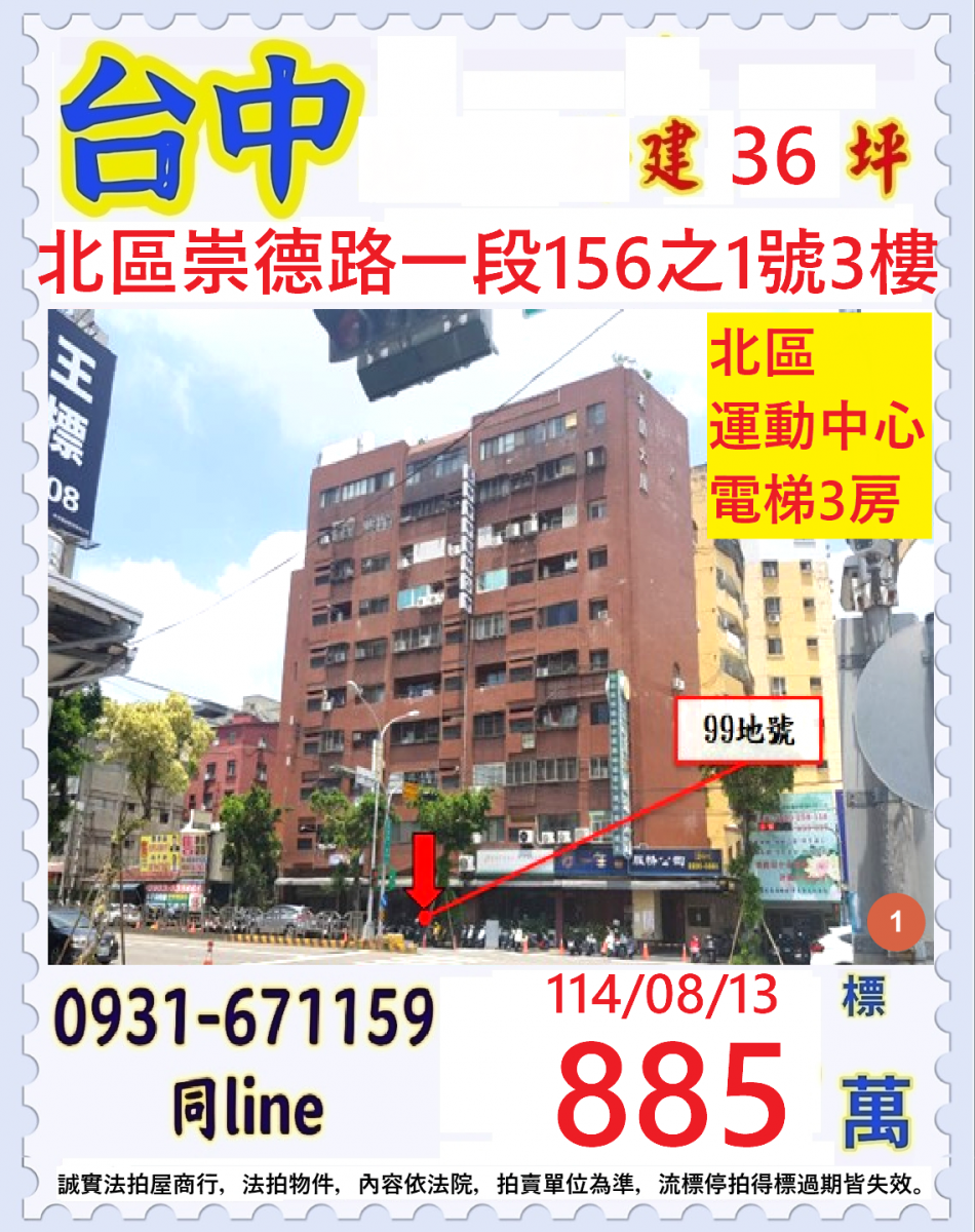 張經理推薦/台中市北區崇德路一段(北區運動中心電梯三房)