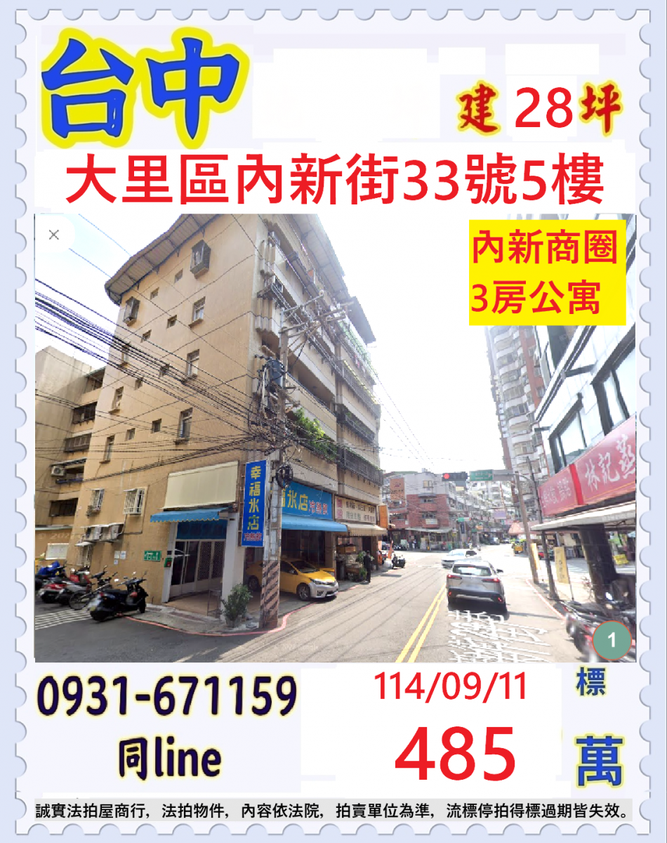 台中市大里區內新街33號五樓