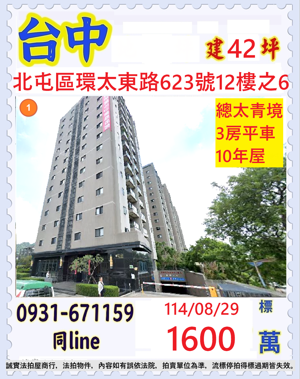 張經理推薦/台中市北屯區環太東路(總太青境視野戶三房平車)